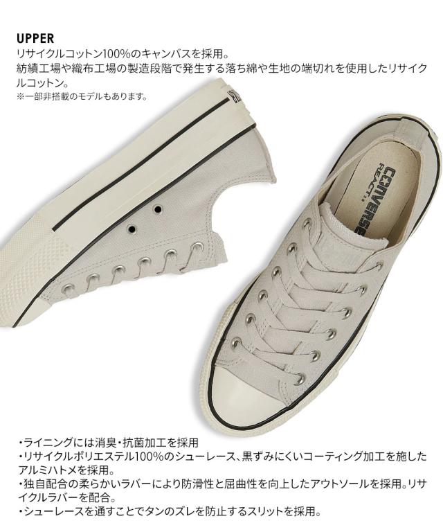 コンバースオリジナルの高機能カップインソール「REACT2.0」搭載。