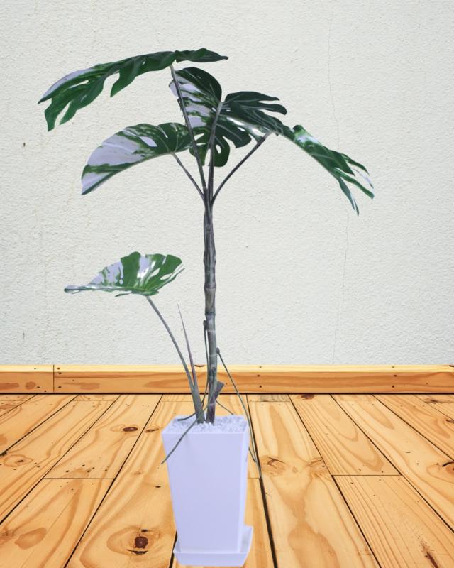 フェイクグリーン、人工観葉植物、造花、モンステラ白葉入り120