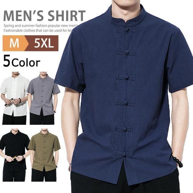 チャイナ服 男性用 メンズ チャイナシャツ カンフーシャツ 半袖 無地 カジュアルシャツ おしゃれ トップス スタンドカラーシャツ バンドカラー 普段着 半袖シャツ チャイナボタン シャツ カジュアルコーデ 舞台衣装 学園祭 演劇 コスプレ 父の日 夏