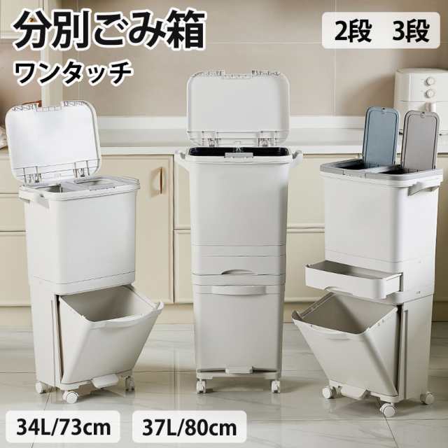 蓋付きゴミ箱 ゴミ箱 ふた付き ワンタッチ スリム 大きめ リビング キッチン ダストボックス キャスター付き 蓋 両開き 片開き 分別 ふたつき おしゃれ ふた付ゴミ箱 34L 37L