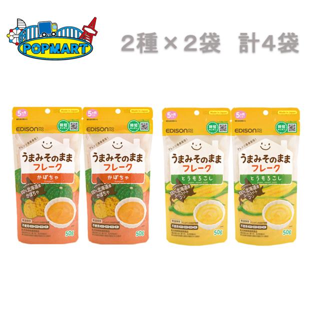 【うまみそのままフレークセット 2種×各2袋 計4袋】エジソンママ EDISONmama エジソン ベビーフード ベビースナック 無添加 離乳食 アレルゲンフリー アレルギー対応 国産 時短 備蓄用 コーンポタージュ 野菜フレークゆうパケット発送のため代金引換・日時指定は不可