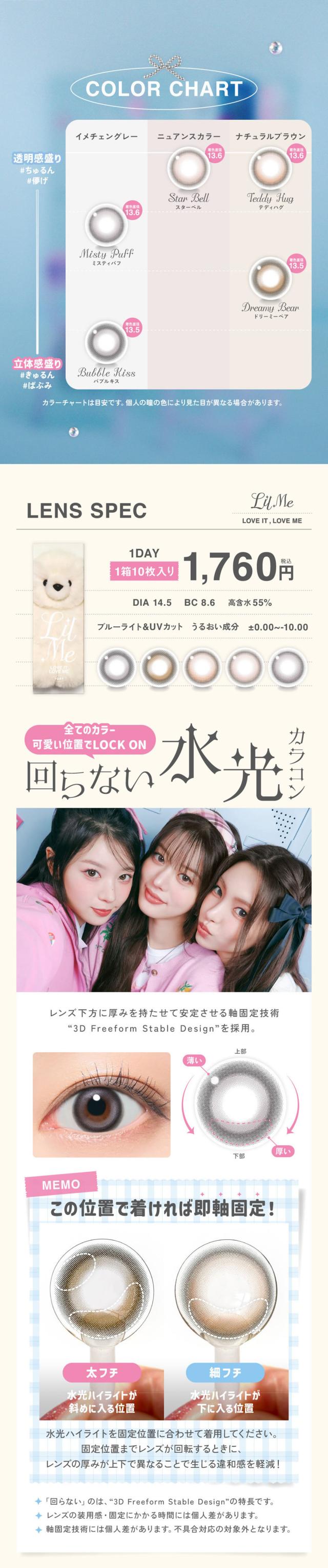 | 着色直径 | 13.5mm - バブルキス / ドリーミーベア 13.6mm - テディハグ / スターベル / ミスティパフ |
