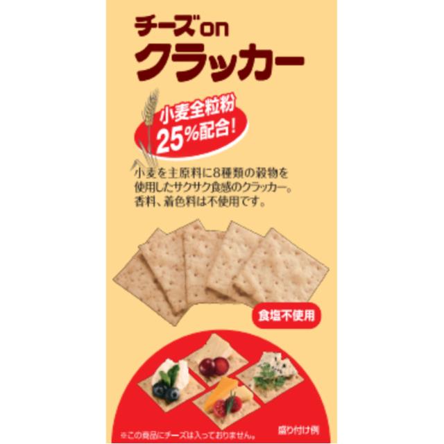 チーズのおいしさを引き立てるクラッカー【サクサク食感のクラッカー】小麦を主原料に8種類の穀物を使用したサクサク食感のクラッカーです。【食塩、香料、着色料不使用】食塩、香料、着色料不使用の素直な味わいがチーズのおいしさを引き立てます。【食物繊維】チーズと一緒に食べることでチーズに不足している食物繊維が補えます。