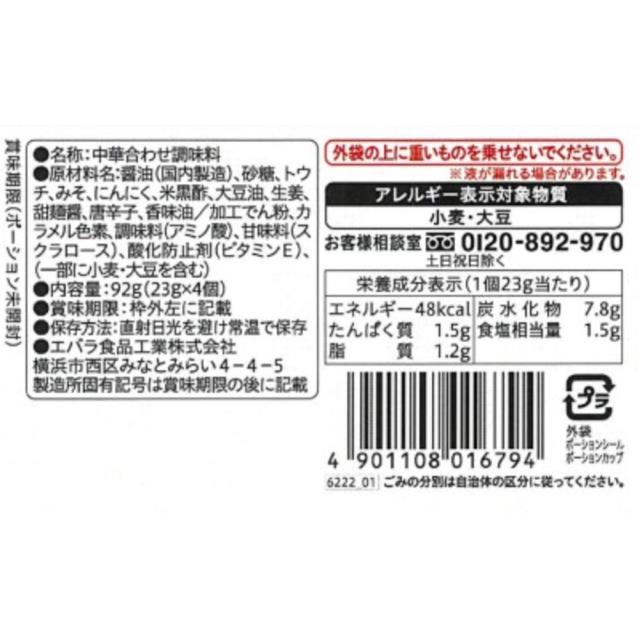 商品名 エバラ食品 プチッと中華回鍋肉 4個入×12袋 容量 92g×12袋 原材料名 醤油(国内製造)、砂糖、トウチ、みそ、にんにく、米黒酢、大豆油、生姜、甜麺醤、唐辛子、香味油/加工でん粉、カラメル色素、調味料(アミノ酸)、甘味料(スクラロース)、酸化防止剤(ビタミンE)、(一部に小麦・大豆を含む) アレルギー特定原材料 小麦 賞味期限 商品の発送時点で、30日以上あるものをお届けいたします 保存方法 直射日光、高温多湿を避けて常温で保存してください。