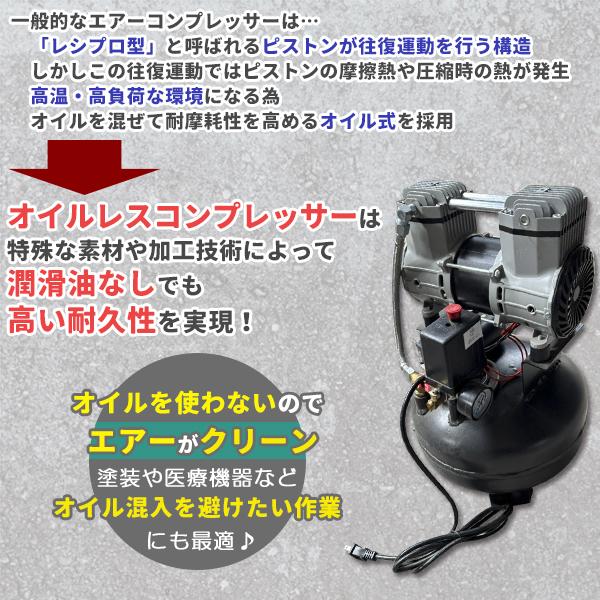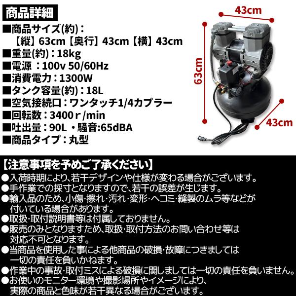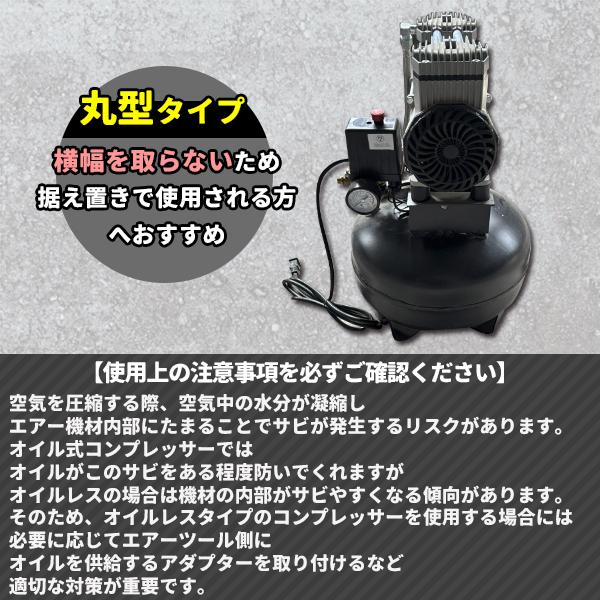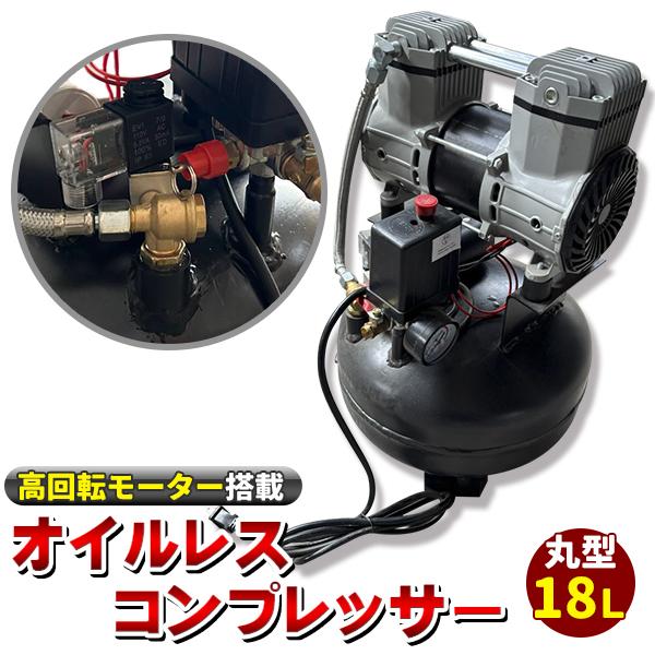 超静音 高回転モーター搭載 オイルレスコンプレッサー 18L 丸型