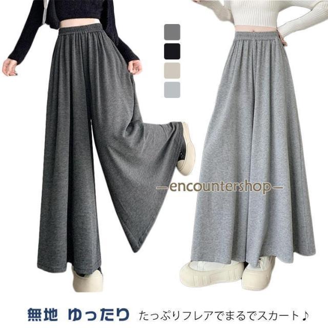 スカート見え スカンツ スカーチョ レディース フレアパンツ きれいめ ガウチョパンツ 春秋 ワイドパンツ フレア ワイド ガウチョパンツ ポケット付