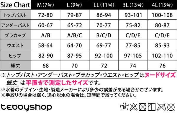 ※トップバスト・アンダーバスト・ブラカップ・ウエスト・ヒップはヌードサイズ、