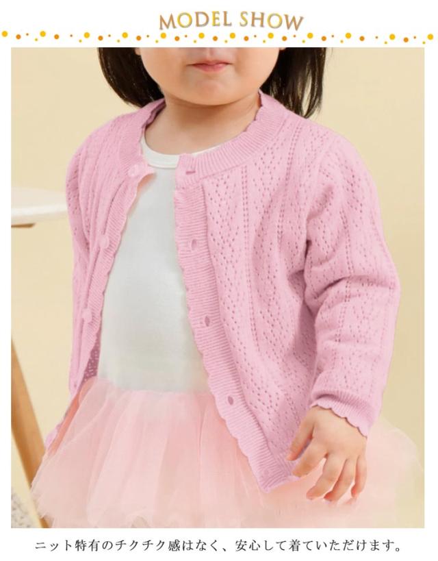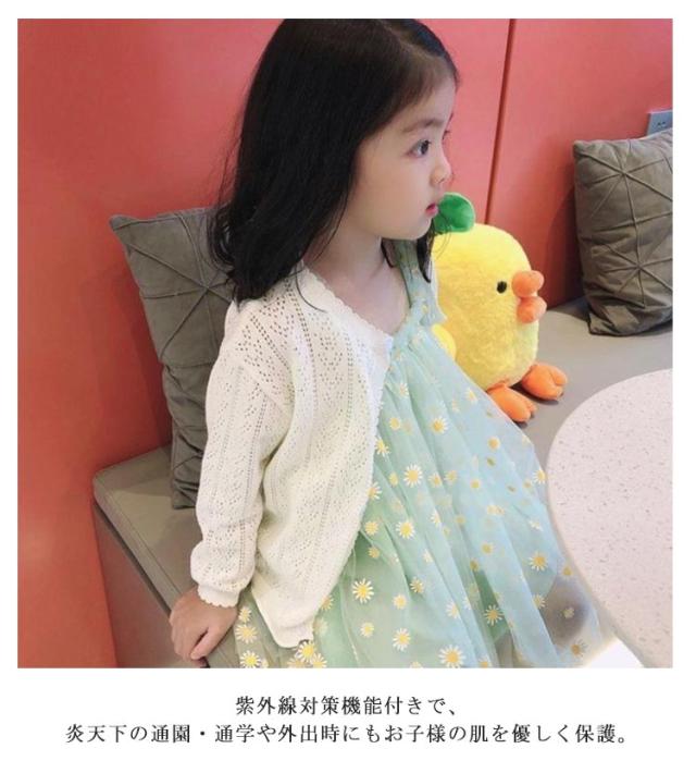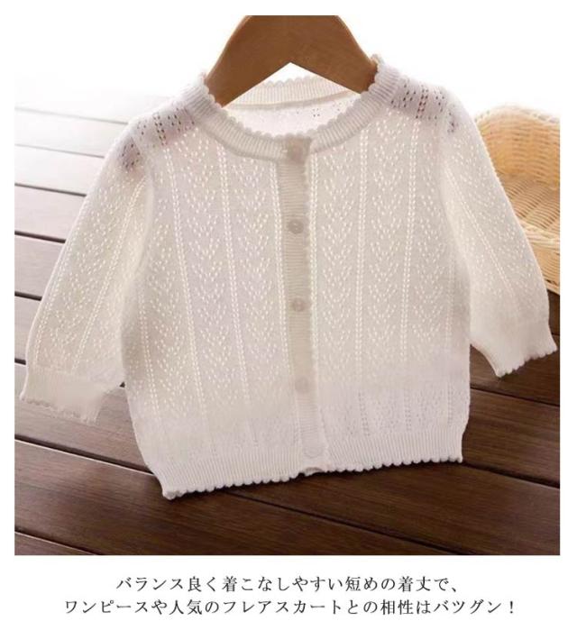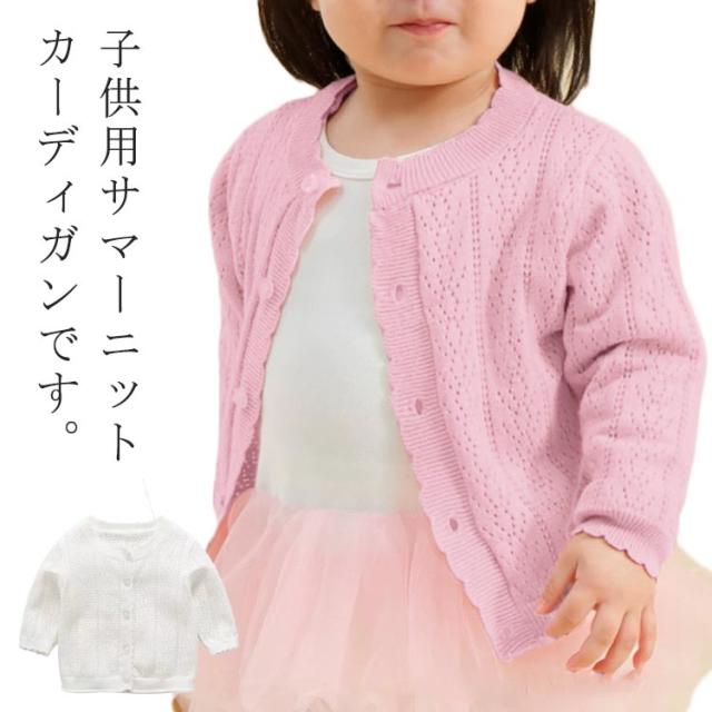 サマーカーディガン 女の子 紫外線カット 夏 薄手 UVカット 子供服 ベビー 長袖 サマーニット 冷房対策 羽織り カーディガン 春 キッズ 秋 UVカット おしゃれ カジュアル シンプル 80 90 100 110 120 130 140 150 ホワイト ピンク お出かけ アウトドア プレゼント ギフト