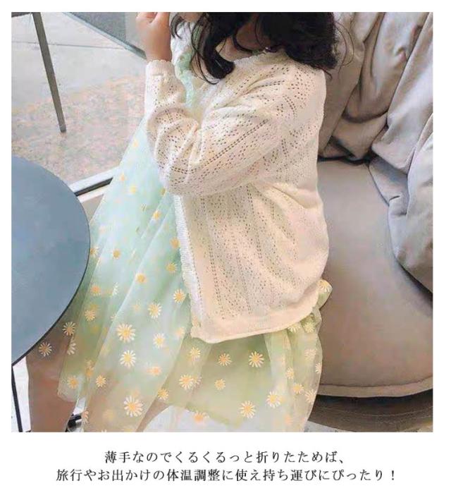| 子供用サマーニットカーディガンです。 ニット特有のチクチク感はなく、安心して着ていただけます。 春夏秋のシーズンに活躍するサマーカーディガン!紫外線対策機能付きで、炎天下の通園・通学や外出時にもお子様の肌を優しく保護。薄手素材で暑さを軽減しながら、冷房対策としても最適です。 薄手なのでくるくるっと折りたためば、旅行やお出かけの体温調整に使え持ち運びにぴったり! バランス良く着こなしやすい短めの着丈で、ワンピースや人気のフレアスカートとの相性はバツグン! 【ワンサイズ上を購入することをお勧めします】 | |