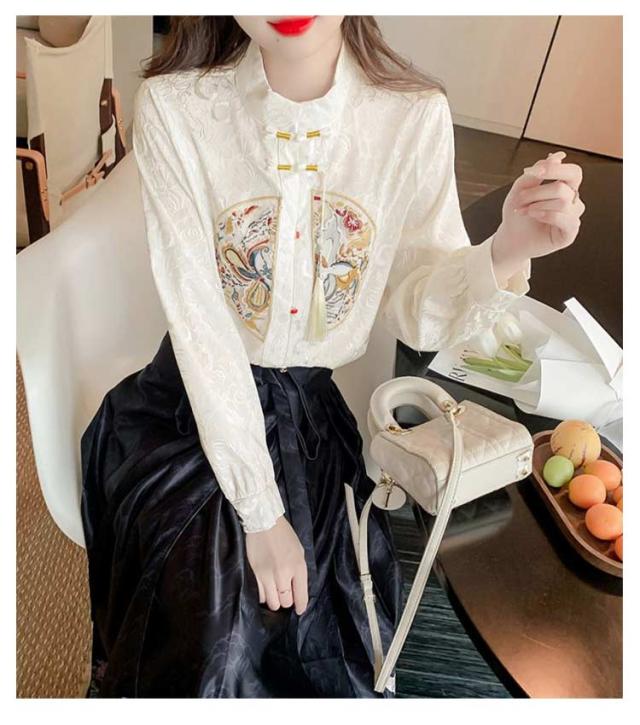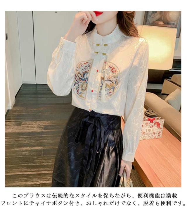 チャイナ服 レディース ブラウス 春 長袖 花柄 シャツ トップス チャイナ風 刺繍 チャイナシャツ スタンドカラー 上品 チャイナボタン 中国風 薄手 シャツ シャツブラウス 春夏 可愛い 春服 エレガント カジュアル ナチュラル きれいめ フェミニン カジュアル