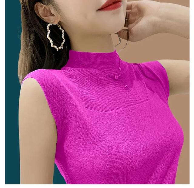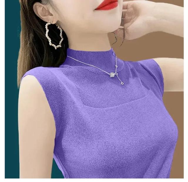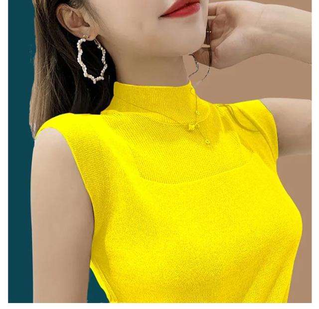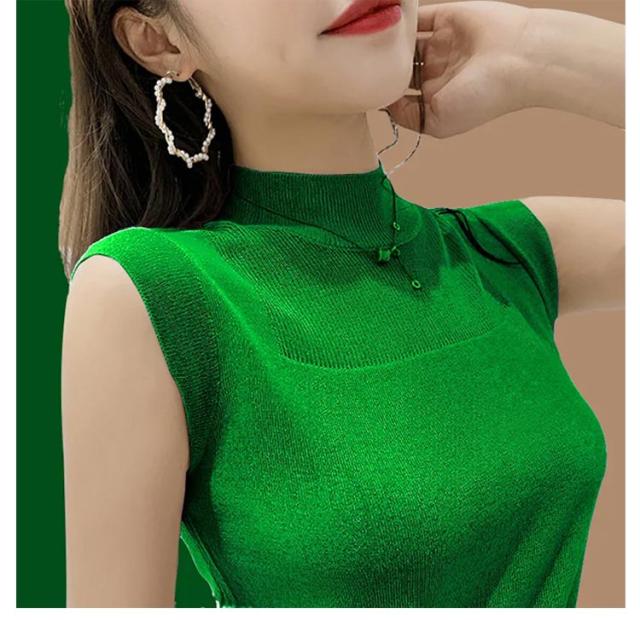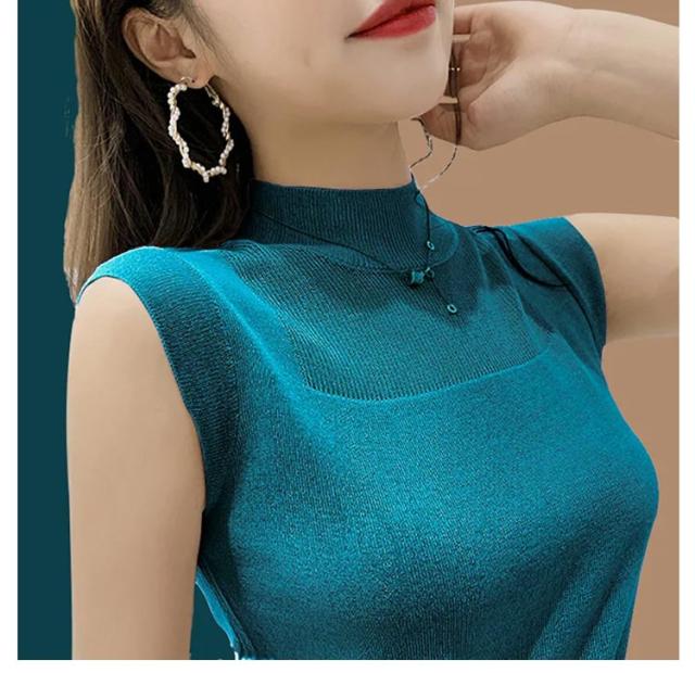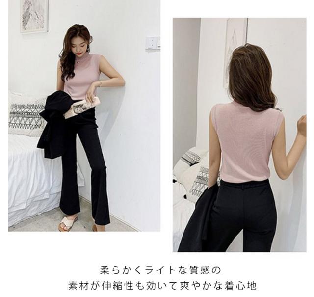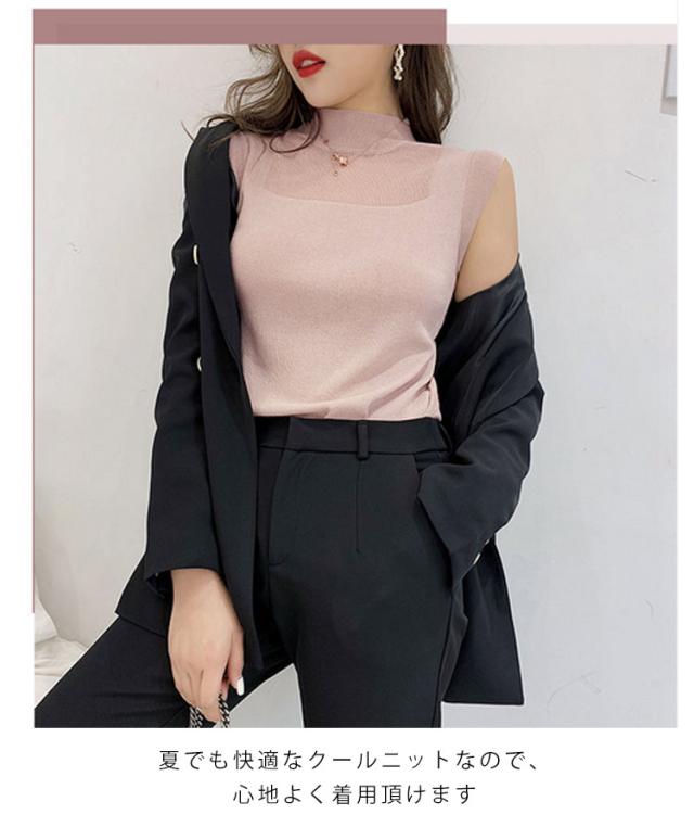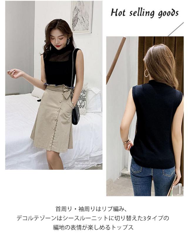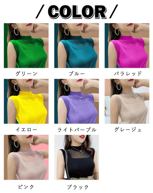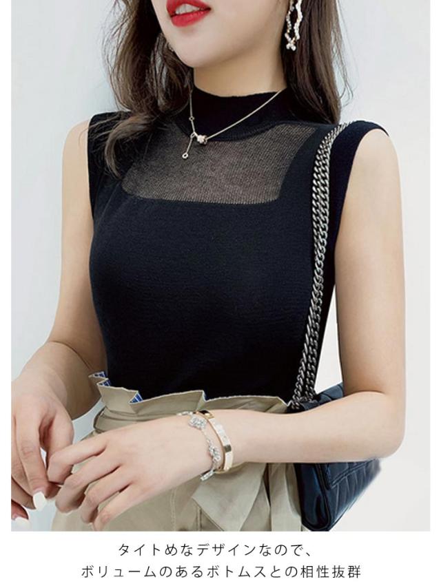 タンクトップ レディース おしゃれ サマーニット ノースリーブ 袖なし 秋 夏 透かし ニットトップス ハイネック カットソー 無地 シンプル 大人女性 重ね着 シースルー 薄手 レイヤード オフィス カジュアル インナー トップス ハイネックノースリーブニット 送料無料