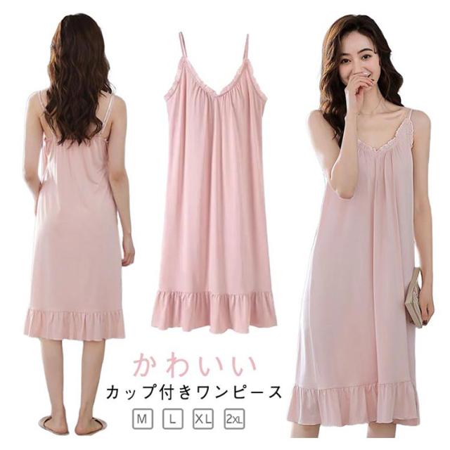 ルームウェア カップ付き ワンピース 部屋着 春夏用 夏 湯上がり パジャマ レディース トラベルパジャマ 半袖 カップ付きワンピース パット付き モーダル かわいい 可愛い シンプル 無地 リラックスウェア 送料無料