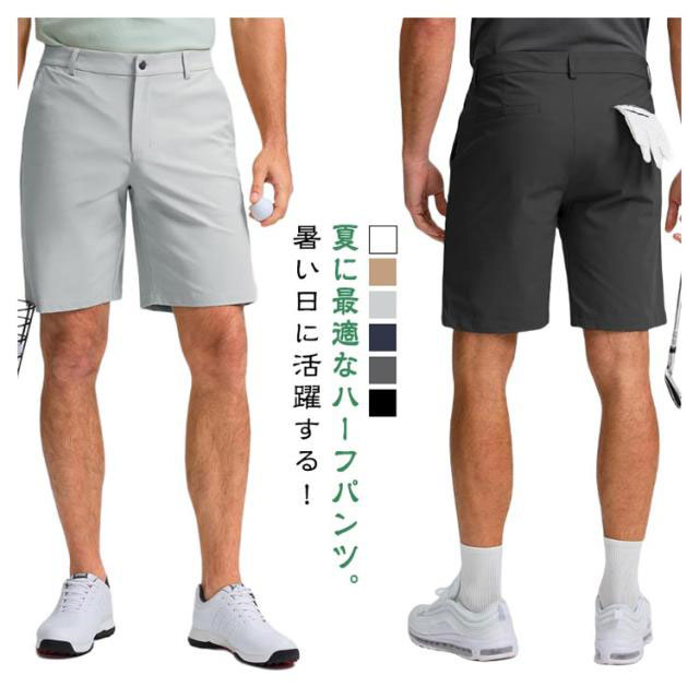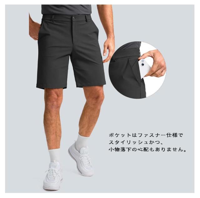 ゴルフパンツ ショートパンツ 5分丈 膝丈 メンズ ゴルフウェア 夏 ハーフパンツ ショートパンツ 大きいサイズ ストレッチ 伸縮 速乾 吸水 通気 軽量 ドライ 涼しい 接触冷感 半ズボン 短パン ファスナーポケット付き ゴルフ スポーツ アウトドア 送料無料 半ズボン