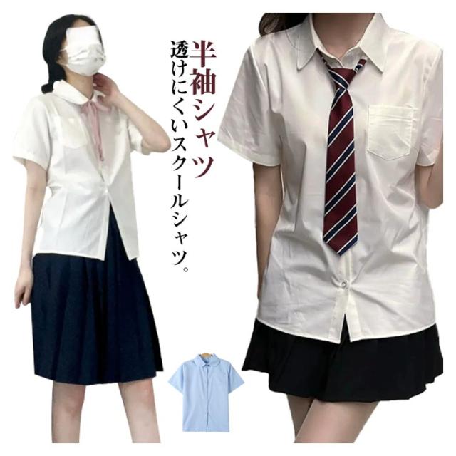 スクールシャツ シャツ ブラウス 半袖 学生シャツ 半袖シャツ ワイシャツ ガールズ 女子 中学生 高校生 jk 制服 学生 角襟 丸襟 学生服 夏 オフィス 仕事 ユニフォーム 10代 20代 30代 送料無料 グレー 青 白