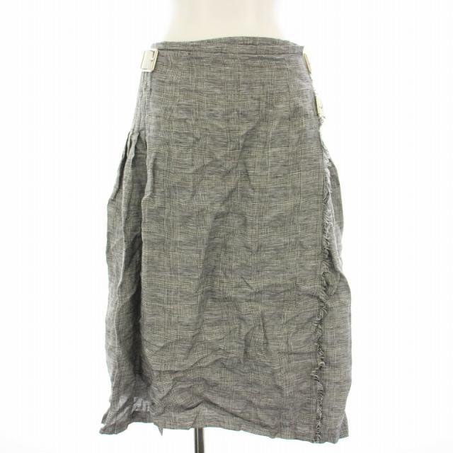 【中古】オニール オブ ダブリン ラップスカート 巻き フレア ミモレ ロング ベルト チェック柄 ウール I42 グレー