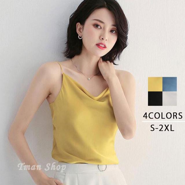 キャミソール インナー トップス サテン調 セクシー ブラウス シルクタッチ レディース 春夏 キャミ 背中見せ 無地 肌着 上品 おしゃれ 新作 送料無料