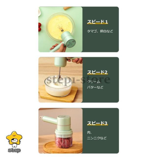 ハンドミキサー 泡立て器 チョッパー 3段階スピード ワイヤレス 電動ミキサー ミキサー 電動ハンドミキサー 泡立て おしゃれ チョッパー 泡立て器