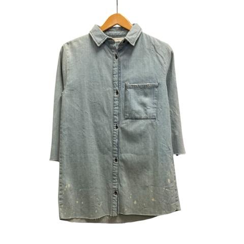 【中古】ザラ ZARA girls シャツ 長袖 デニム 総柄 コットン 4676/611/406 152 ライトブルー 白 ホワイト キッズ
