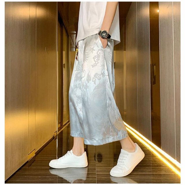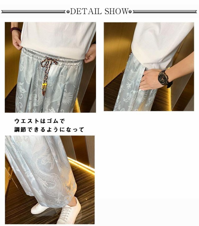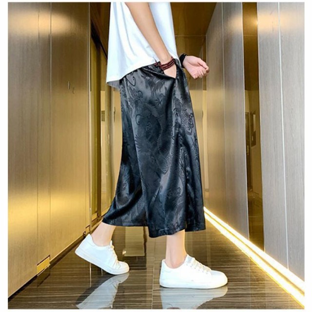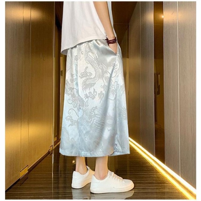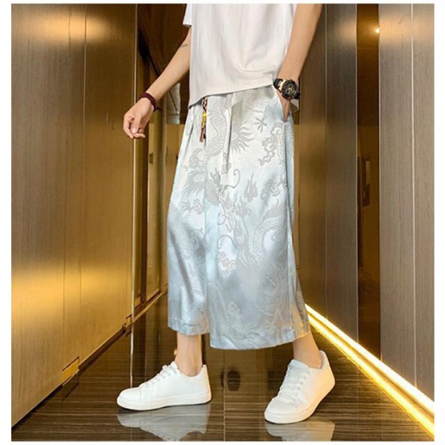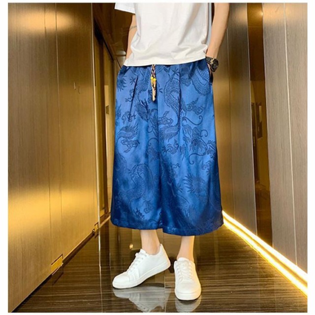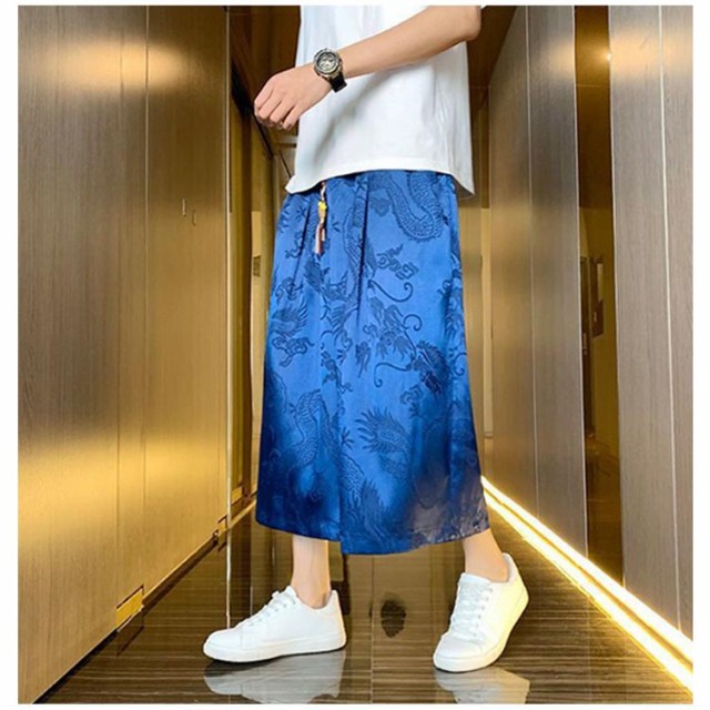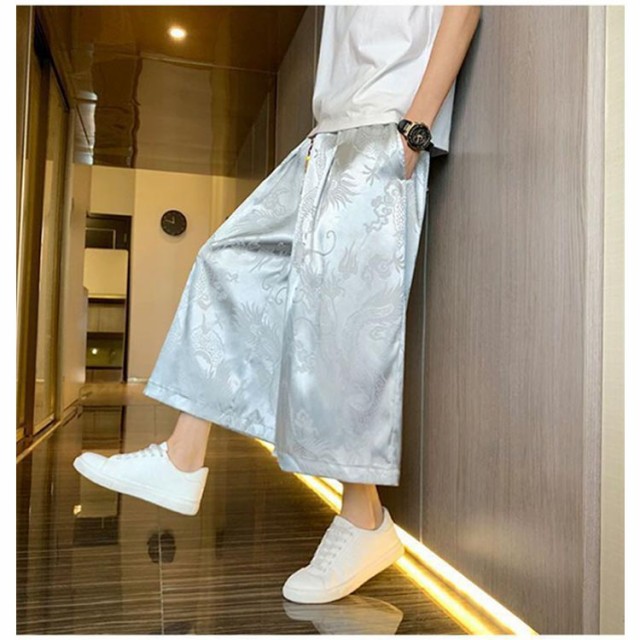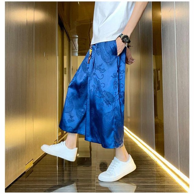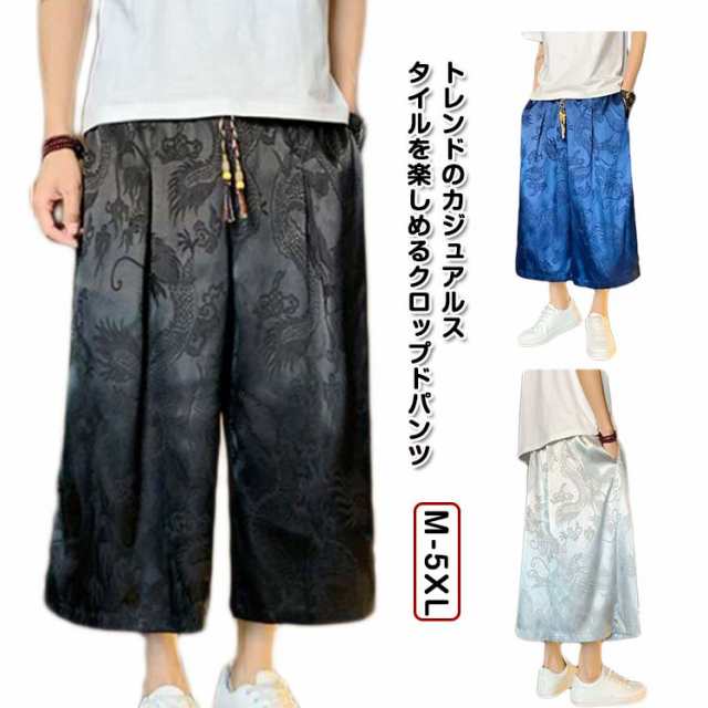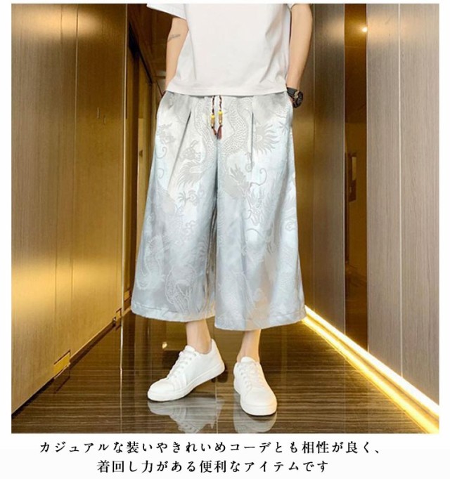 袴 メンズ ゆったり ひざ下 ウェストゴム 夏 ワイドパンツ チャイナ風 ハーフパンツ ワイドパンツ ワイド アンクルパンツ 無地 ルームウエアー 春 クロップドパンツ カジュアル メンズズボン ガウチョパンツ 7分丈 大きいサイズ 春夏