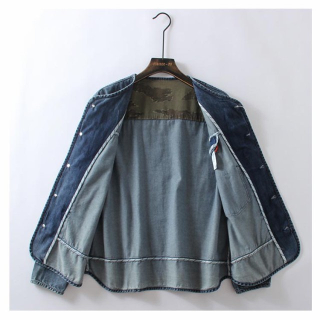 デニム 薄手 ライトアウター Gジャン ノーカラー 羽織り ジャケット メンズ 前開き ルーズシルエット ゆったり アメカジ カジュアル ストリート 春 シンプル きれいめ ワーク ジャケット