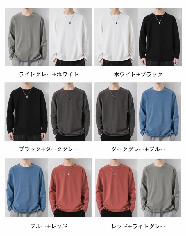 メンズ Tシャツ tシャツ クルーネック トップス 綿 2枚セット コットン ロンT 秋冬 春 長袖 無地 シンプル 秋物 重ね着 秋 秋服 体型カバー ロングtシャツ インナー レディース ユニセックス スポーツ カジュアル