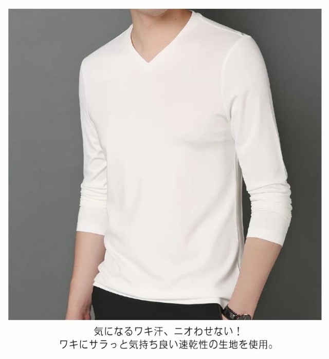 2枚組 Tシャツ 長袖 暖 接触冷感 Vネック メンズ インナーシャツ アンダーシャツ 薄手 肌着 冷感インナー 長袖V首 長袖Vネック 防菌 防臭トップス 冬物 冬 2枚組 保温 速乾 スポーツ 下着 肌着