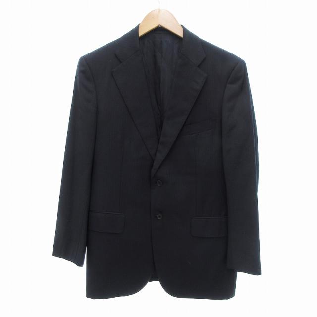 【中古】バーバリー ロンドン テーラードジャケット ブレザー シャドーストライプ シルク混 BB5 ダークネイビー
