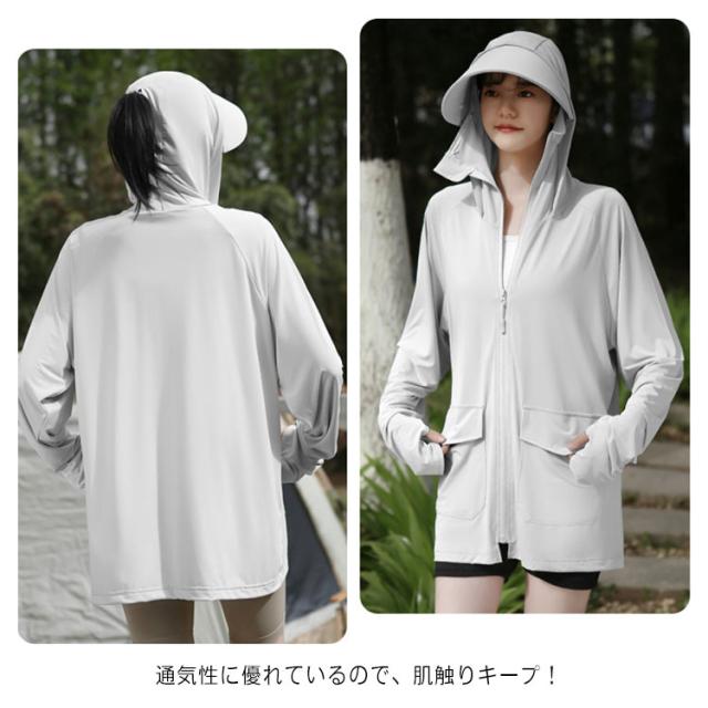 涼しい 接触冷感 冷感パーカー パーカー 冷感パーカー UVカット レディース 接触冷感パーカー 日焼け 冷感UV uvカット UVパーカー冷感 長袖 アウター 冷感パーカー 指穴 つば サンバイザー 体型カバー 紫外線対策 アウトドア 海 夏 ひんやり