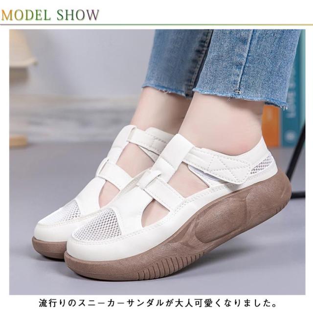 | 流行りのスニーカーサンダルが大人可愛くなりました。 素足にも靴下にも合うお洒落デザイン。 マジックテープ仕様になっているので、簡単に着脱することができる ナチュラルコーデ好きな方にぴったりです。 | |