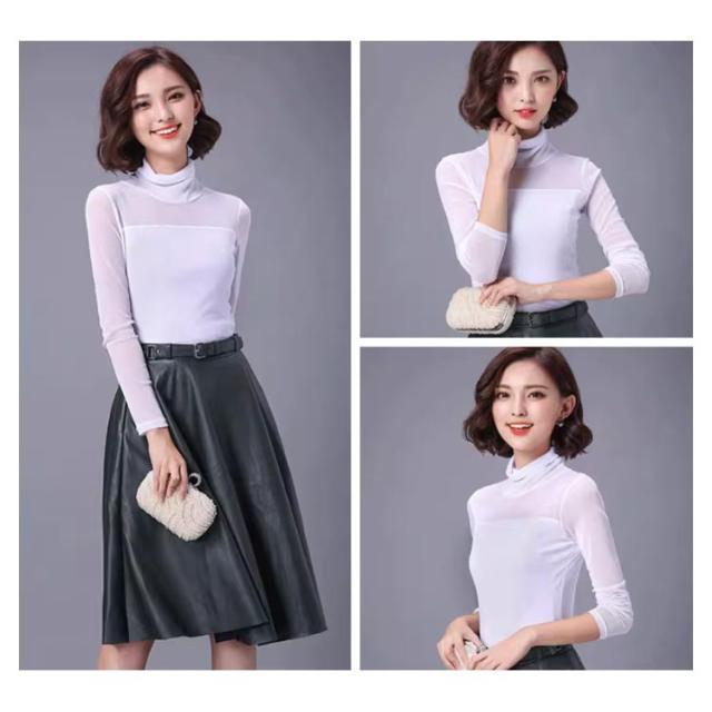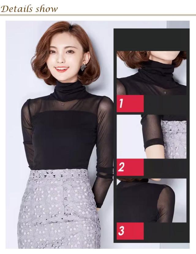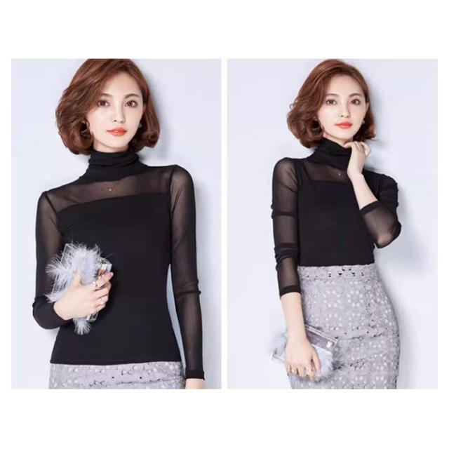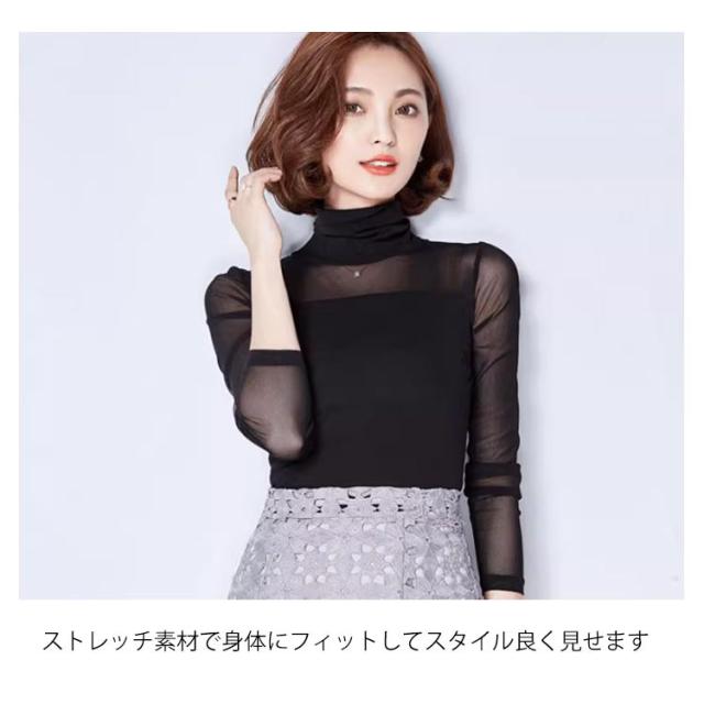 | 透け感がとってもフェミニンでセクシーな長袖のカットソー 透け感のあるシアー素材お洒落に肌隠し ハイネック&クルーネックでデコルテを美しくみせます ストレッチ素材で身体にフィットしてスタイル良く見せます | |