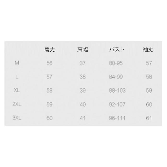 | サイズについての説明 | M L XL 2XL 3XL サイズ:写真通り ※上記サイズは平置き実寸になります。サイズ表の実寸法は商品によって1-3cm程度の誤差がある場合がございます。 |