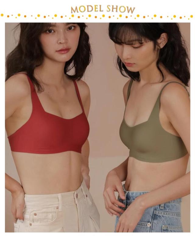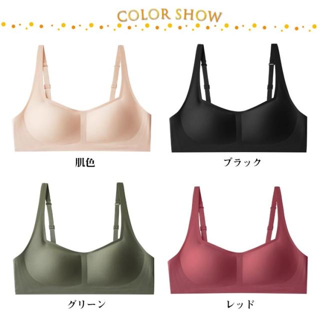 | フラット仕上げでお肌に縫い目が当たらない、まるで着けていないブラです。 ノンワイヤーながらバストを優しくアップしてくれる設計になっています。 軽やかかつ柔らかな素材を使用しているため、窮屈感もなく自然な着心地です。 細ストラップ仕様はお好みに合わせて長さ調整可能で肩に優しく安心! 余計な装飾がないシンプルデザインは自然で美しいスッキリバストを作り上げてくれる。 取り外し可能なパット付きなので洗濯が楽です。 | |