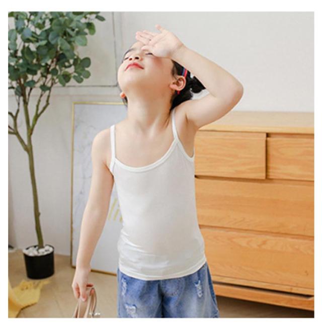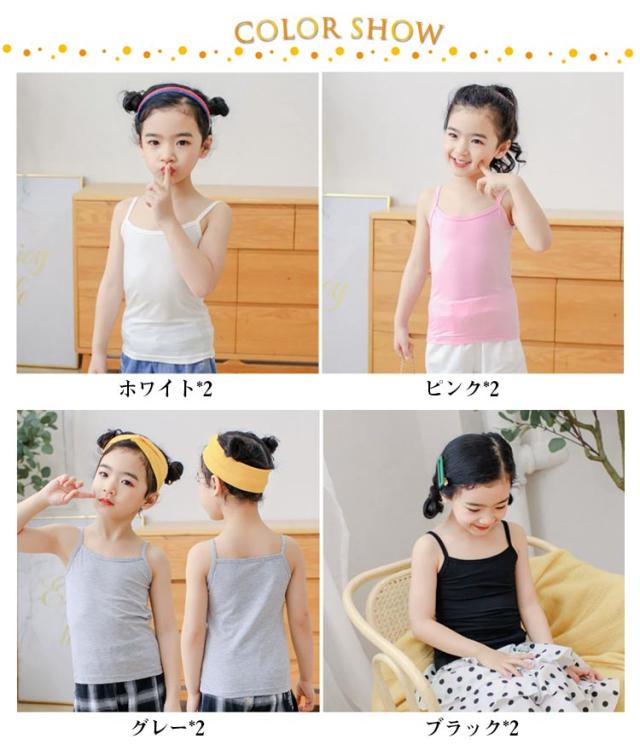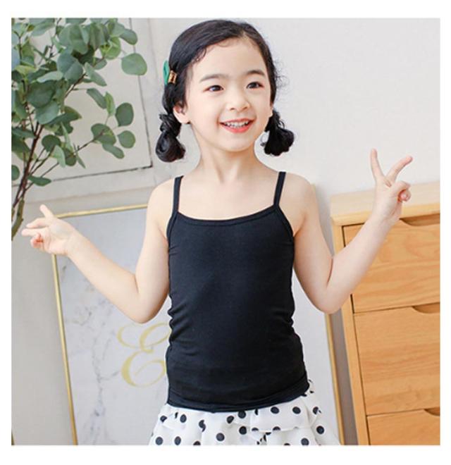 100-160cm キッズ 春夏 ノースリーブ ジュニア ガールズ 白 子供服 2枚セット 小学生 こども 柔らかい 4色 インナー 下着 中学生 通気性 女の子 肌着 春 おしゃれ カジュアル 薄手 子ども服 夏 秋 アンダーウェア 無袖 キャミソール 黒 無地 シンプル ダンス