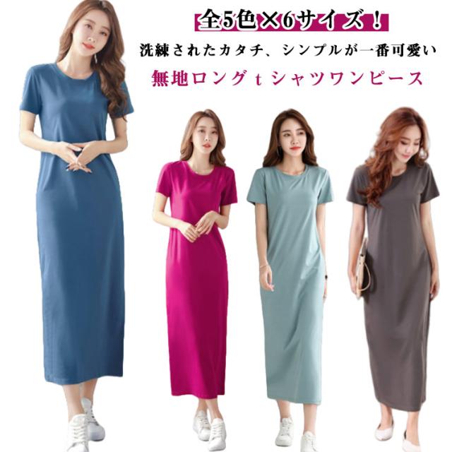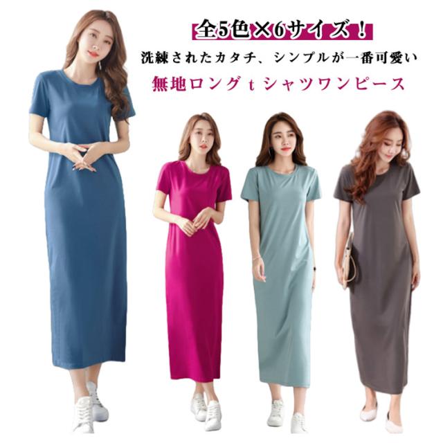 ゆったり 全5色×6サイズ ワンピース 春夏 クルーネック シンプル 半袖 ロングtシャツワンピース 薄手 全5色×6サイズ かわいい 無地 ルームウエア tシャツワンピース カジュアルワンピース ワンピ 春 夏 おしゃれ カジュアル ロングワンピース 部屋着 寝間着 お出かけ