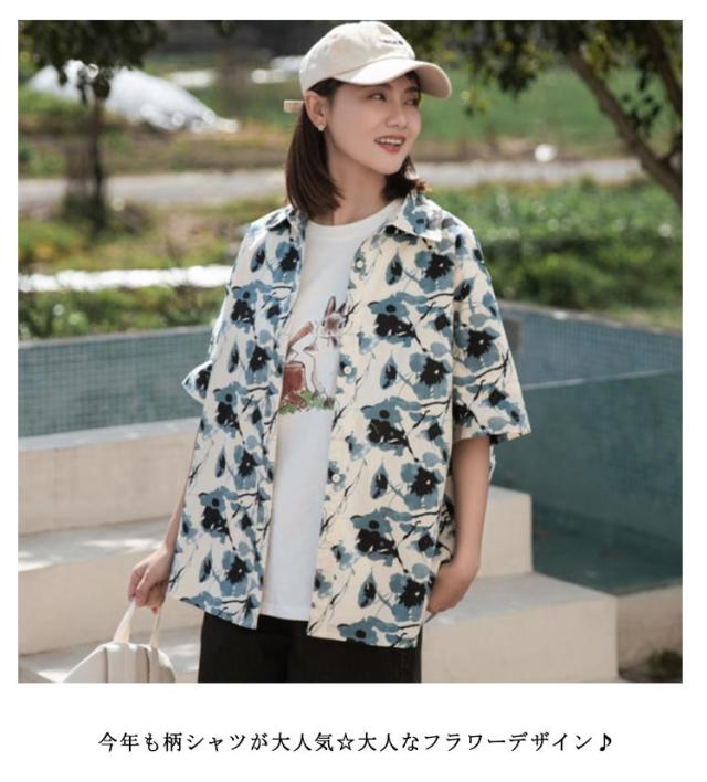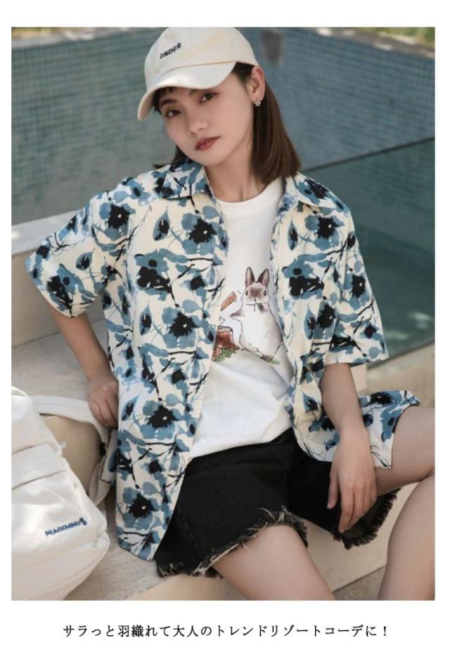 ブラウス 花柄 レディース 前開き トップス アロハシャツ シャツ サマー カジュアル アロハシャツ 柄シャツ 涼しい ハワイ リゾート 葉 総柄 フラワー 夏 春 ボタニカル シャツ エスニック ファッション 可愛い おしゃれ 薄手 ゆったり ビーチ リゾート