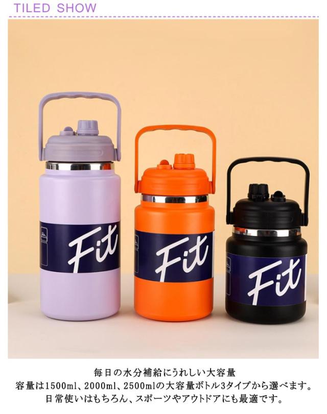 | 1.5L 2.0L 2.5L 毎日の水分補給にうれしい大容量 倒れてもこぼれず、持ち運びに便利 高密閉のフタを採用しており、液体漏れの心配がありません。 移動中や外出先でも安心して使える水筒設計です。 プレミアム品質で安心 本体には高品質な304ステンレス鋼を使用し、安全性に配慮。 PBAや水酸化物、鉛などの有害物質は一切不使用です。 毎日の水分補給にうれしい大容量 容量は1500ml、2000ml、2500mlの大容量ボトル3タイプから選べます。 日常使いはもちろん、スポーツやアウトドアにも最適です。 優れた保温・保冷力 真空断熱の二重構造ステンレスボトルで、飲み物の温度を長時間キープ。 暑い日も寒い日も快適に使用できます。 | |