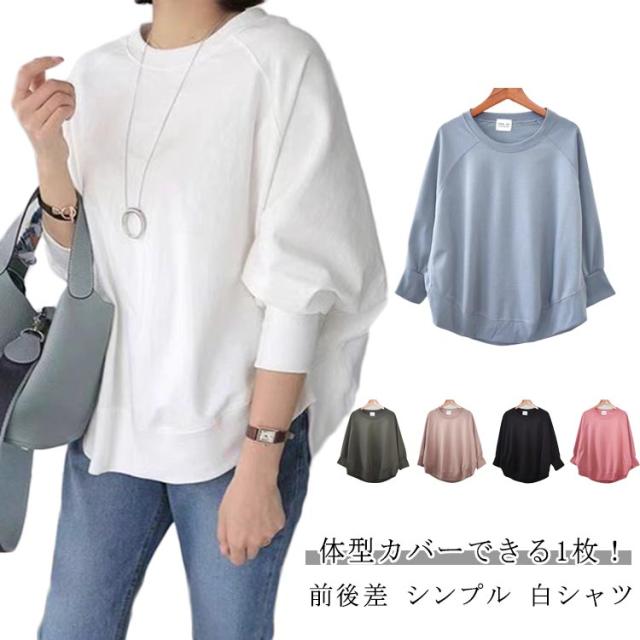 Tシャツ レディース カジュアル ゆったり 夏 ブラウス ブラウス カットソー 半袖 tシャツ ドルマン風 半そで フレンチスリーブ 着痩せ 前後差 体型カバー 20代 30代 40代 50代 スリット入り 大きいサイズ