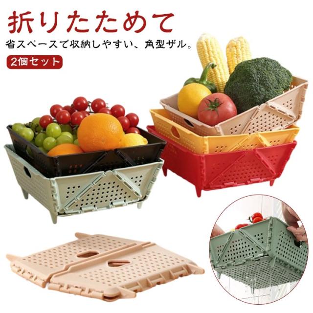 折りたたみザル 一人暮らし コンパクト サラダ水切り ざる 水切りざる 収納 新生活 2個 取っ手付き 角型 角ざる 水切り 下ごしらえ 野菜水切り 四角 セット 水切り器 キッチンツール 調理器具 ザル 折りたたみザル プラスチック キッチン 台所 用品 キャンプ アウトドア