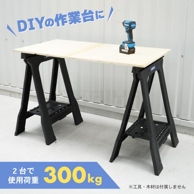 ソーホース プラスチック 2台セット 折りたたみ 作業台 使用荷重300kg ワークテーブル 馬脚 DIY 日曜大工 切断 簡易作業台 KIKAIYA
