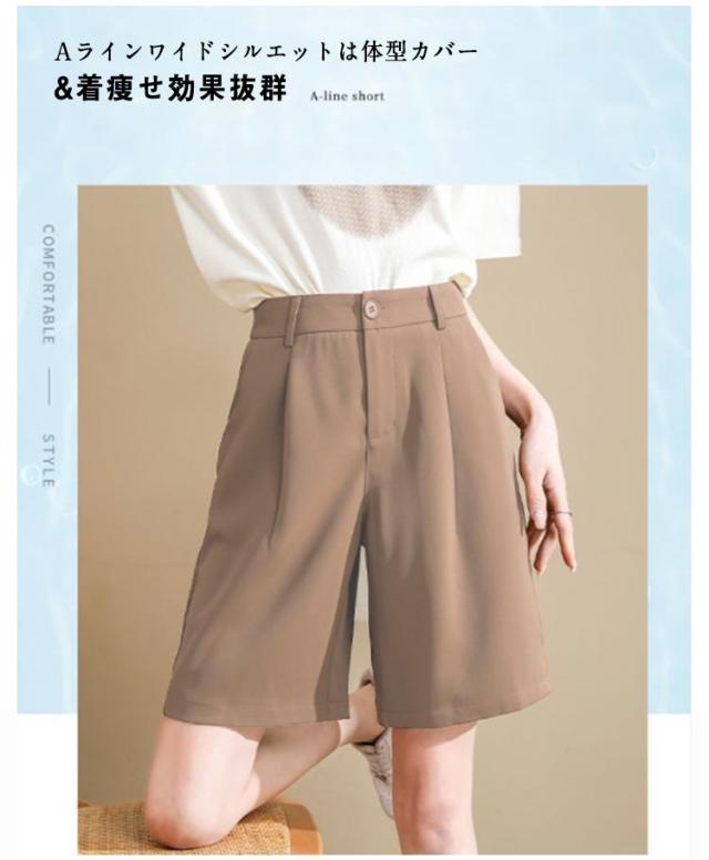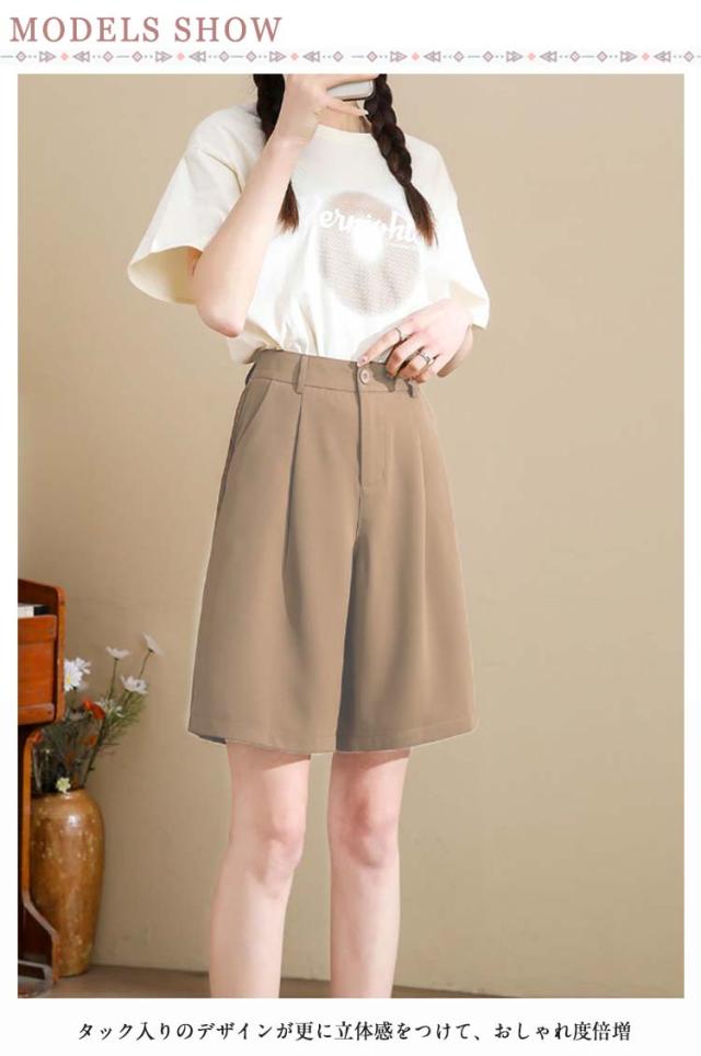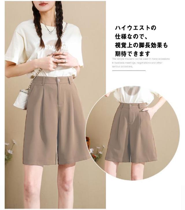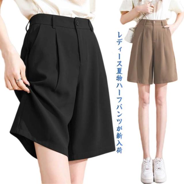 夏 ボトムス ゆったり 半ズボン 無地 シンプル パンツ ハーフパンツ カジュアルパンツ 夏パンツ 膝上 お洒落 通勤 夏服 薄手 ショートパンツ ポケット付き オフィス 女性用 OL レディース ハーフ丈 カジュアル ワイドパンツ きれいめ 大人 オトナ 短パン 五分丈