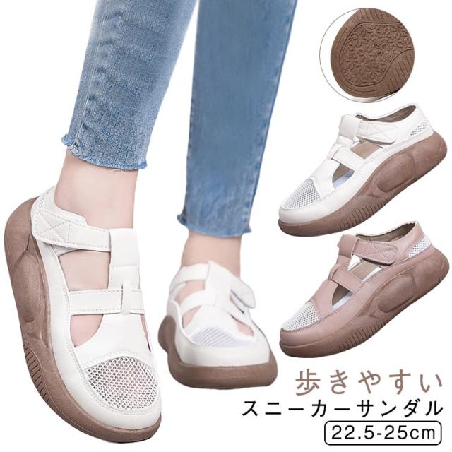 スポーツサンダル 歩きやすい 厚底スニーカー メッシュ スニーカーサンダル 歩きやすい 疲れない 歩きやすい 美脚シューズ 通気性 快適 スリッポン クッションソール サンダル