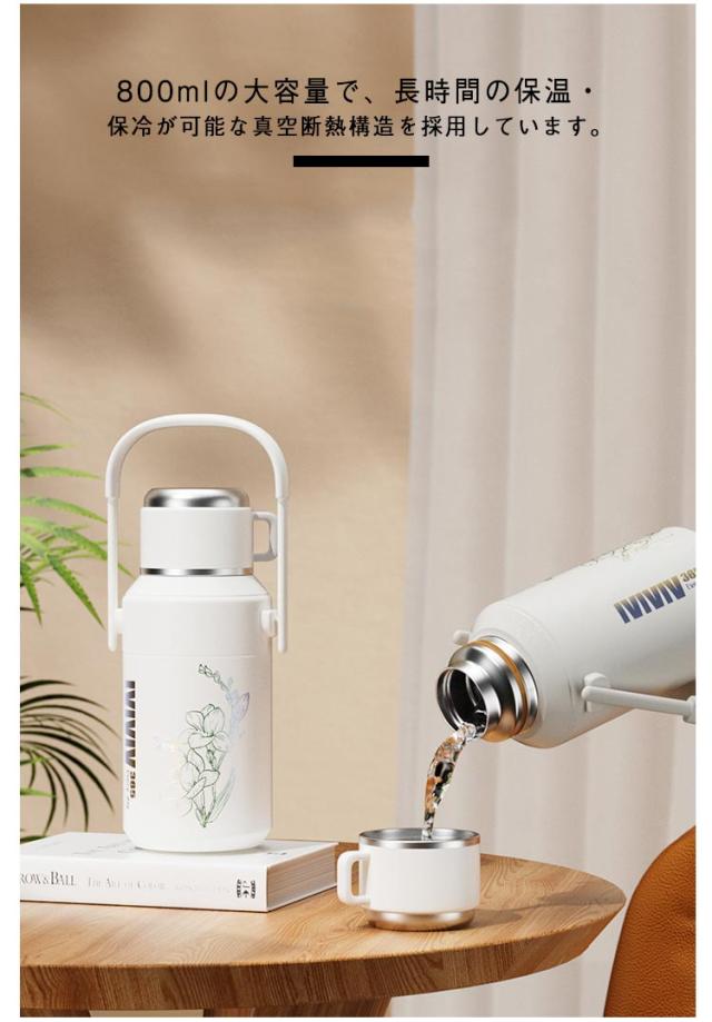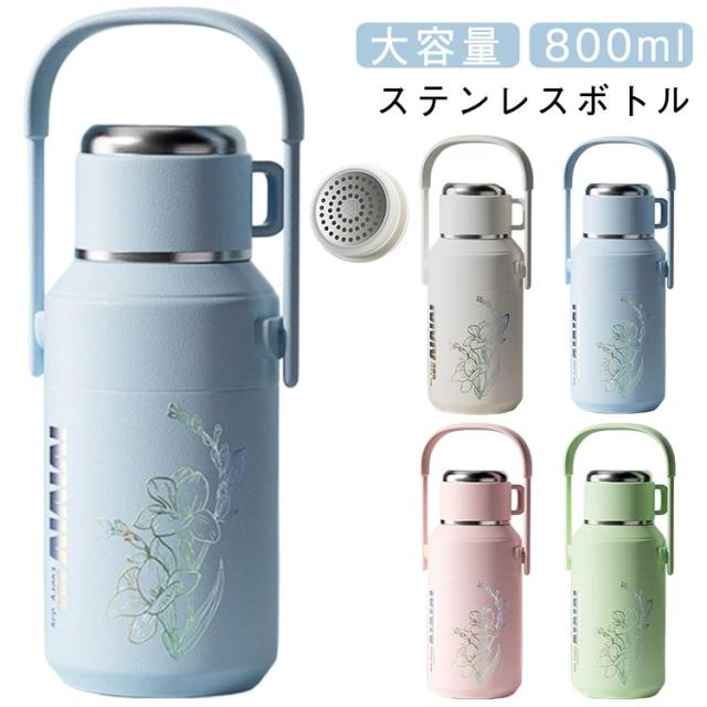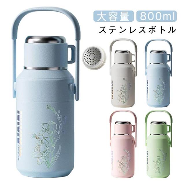 大人 水筒 800ml 水筒 持ち運び タンブラー 保温 ステンレス 保温 保冷 ウォーターボトル ホルダー付き 広口 直飲み カップ付き 子供 スポーツ 登山 運動会 自転車 アウトドア