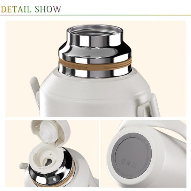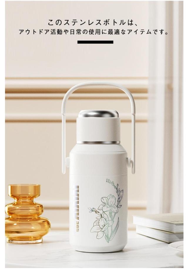 | このステンレスボトルは、アウトドア活動や日常の使用に最適なアイテムです。 800mlの大容量で、長時間の保温・保冷が可能な真空断熱構造を採用しています。 広口設計により、氷を入れやすく、清掃も簡単に行えます。 幅広く手厚いハンドルで、快適に持ち運びができます。 おしゃれなデザインで、色々なスタイルにマッチし、日常使いからアウトドアシーンまで幅広く対応します。 | |