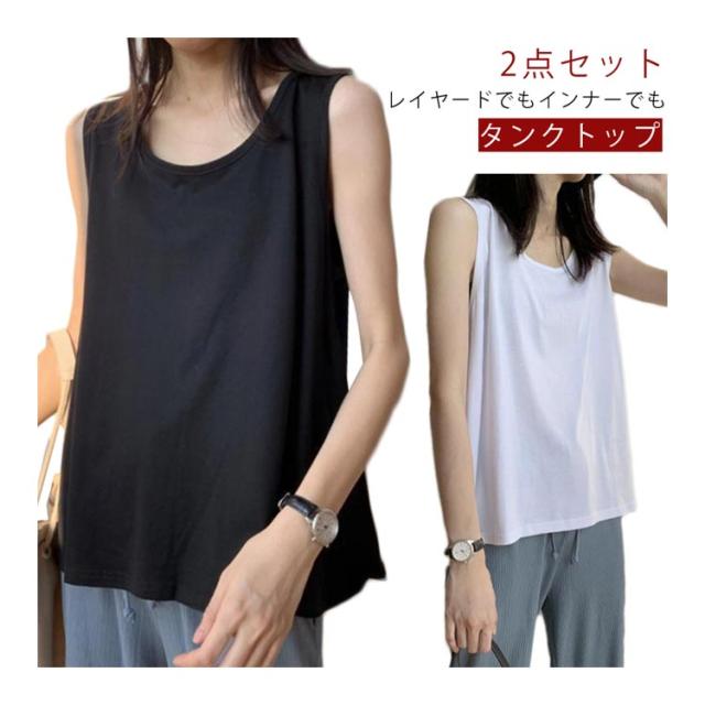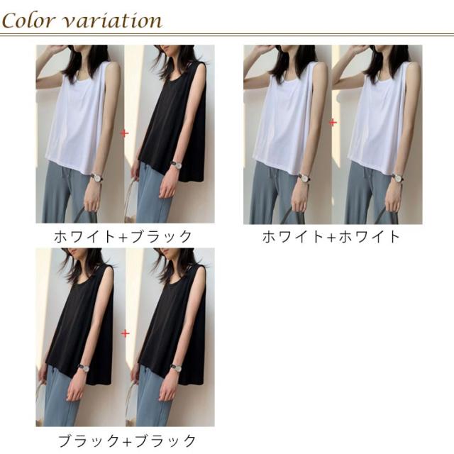 ラウンド 2枚セット カバー 重ね着 ノースリーブ インナー レイヤードタンクトップ レディース 2枚セット インナー レイヤードキャミソール ゆったり キャミソール 無地 肌着 アンダーウェア シャツ