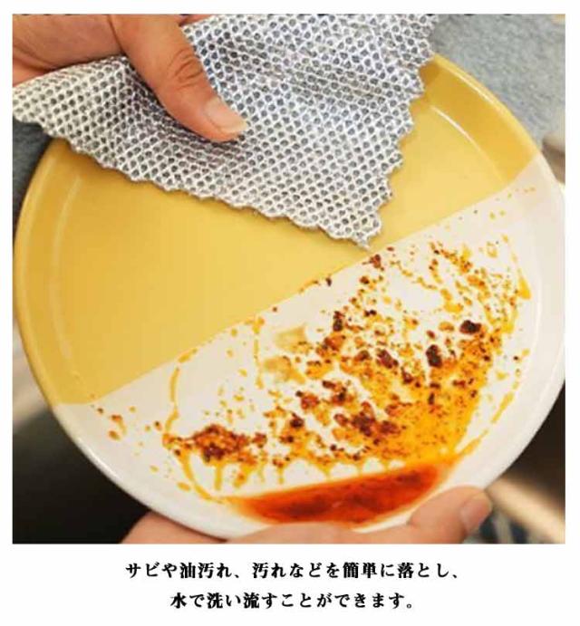 | 両面使用できるキッチンクロスです。 A面は金属ワイヤー入りでコーティングを損傷することなく、頑固な汚れを簡単に取り除くことができます。 B面は竹炭繊維で高い吸水性で汚れを簡単に拭き取れる。 毛穴が細かくて、泡が立ちやすいので、すぐにきれいになり、ふきんに油汚れが残りません。 サビや油汚れ、汚れなどを簡単に落とし、水で洗い流すことができます。 乾湿両用、使い勝手が良い、油汚れがくっつきにくいため、時短便利を叶う。細かい穴 泡立ちが良い、繰り返し利用可能、汚れがくっつきにくい、多機能 使いやすい、フライパンのコゲを残さずスッキリ落とす。 調理台、レンジやテーブルなどの油汚れ取りの台拭きや木製食器の水拭きに非常に便利! | |