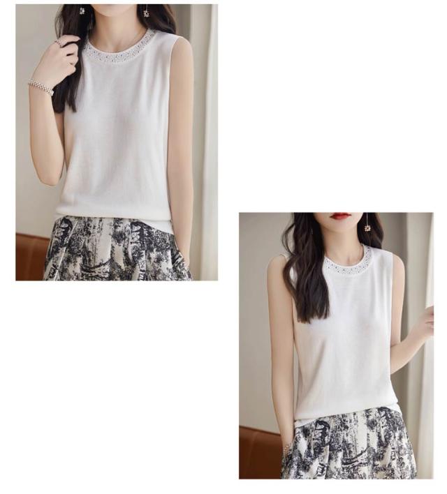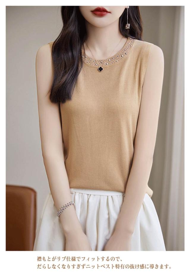 ニットベスト ノースリーブ レディース ニットベスト サマーニット 無地 袖なし セーター カジュアル 丸首 アイスシルク ゆったり 体型カバー 大きいサイズ 通勤 タンクトップ 冷感 着?せ トップス デート 春 夏