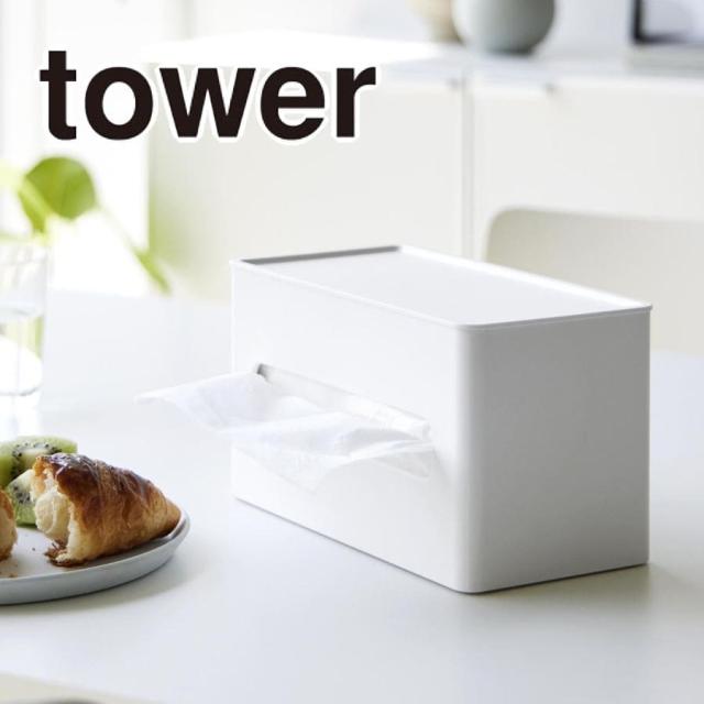 TOWER 両面コンパクトティッシュ&ウェットシートケース ホワイト 2040 送料無料 シンプル コンパクト 省スペース