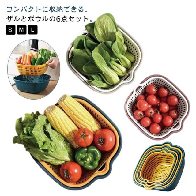 | コンパクトに収納できる、ザルとボウルの3点セット。 ザルとボウルをそれぞれ、S・M・Lの3サイズが一緒になったお得なセットです。 入れ子式で、すべてを重ねると高さがフラットになり、場所を取らずに収納可能。 注ぎ口がついているので、ドレッシングやケーキ作りなどにも便利◎ 便利な取っ手付き。 | |