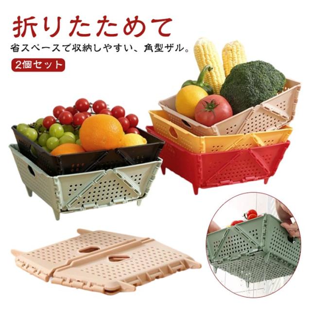 取っ手付き 2個 折り畳み 角型 セット 用品 サラダ水切り ざる ザル 四角 水切りざる 野菜水切り 水切り 下ごしらえ 収納 コンパクト 角ざる 折りたたみザル キッチンツール 調理器具 プラスチック 新生活 一人暮らし キッチン 台所 水切り器 キャンプ アウトドア