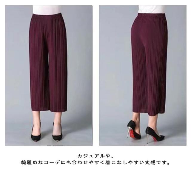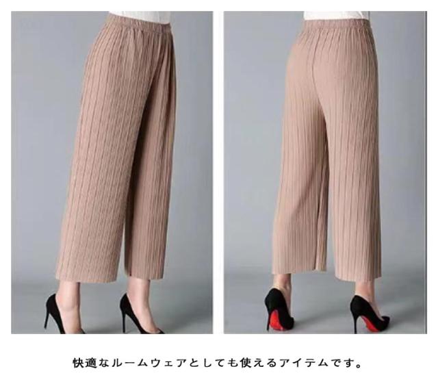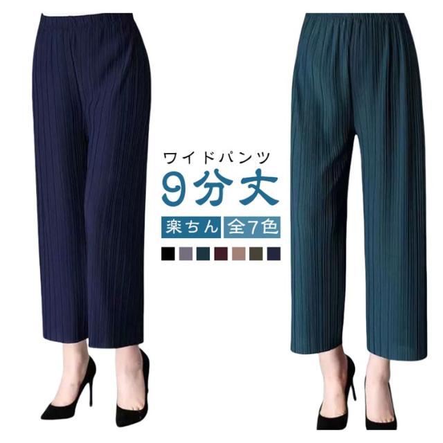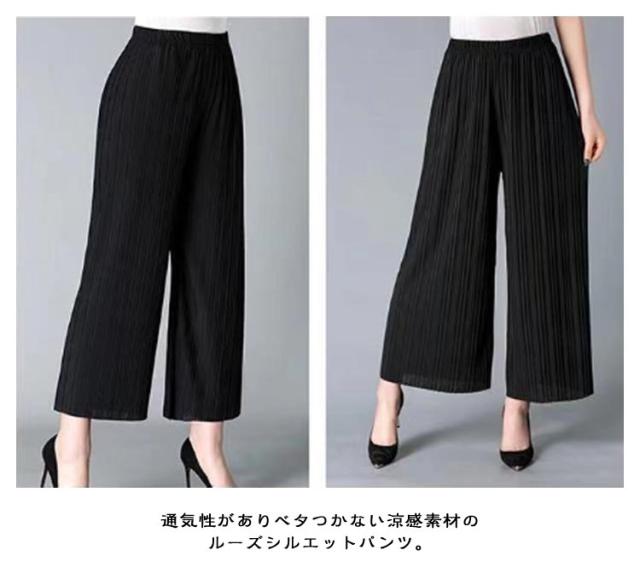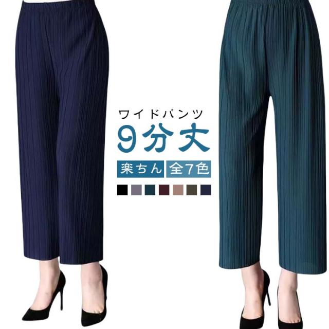 9分丈 ワイド レディース 春夏 ガウチョパンツ パンツ ワイドパンツ ボトムス 薄手 らくちん プリーツパンツ ワイドパンツ ウエストゴム ズボン 九分丈 リラックスパンツ ハイウエスト おしゃれ ゆったり かわいい きれいめ